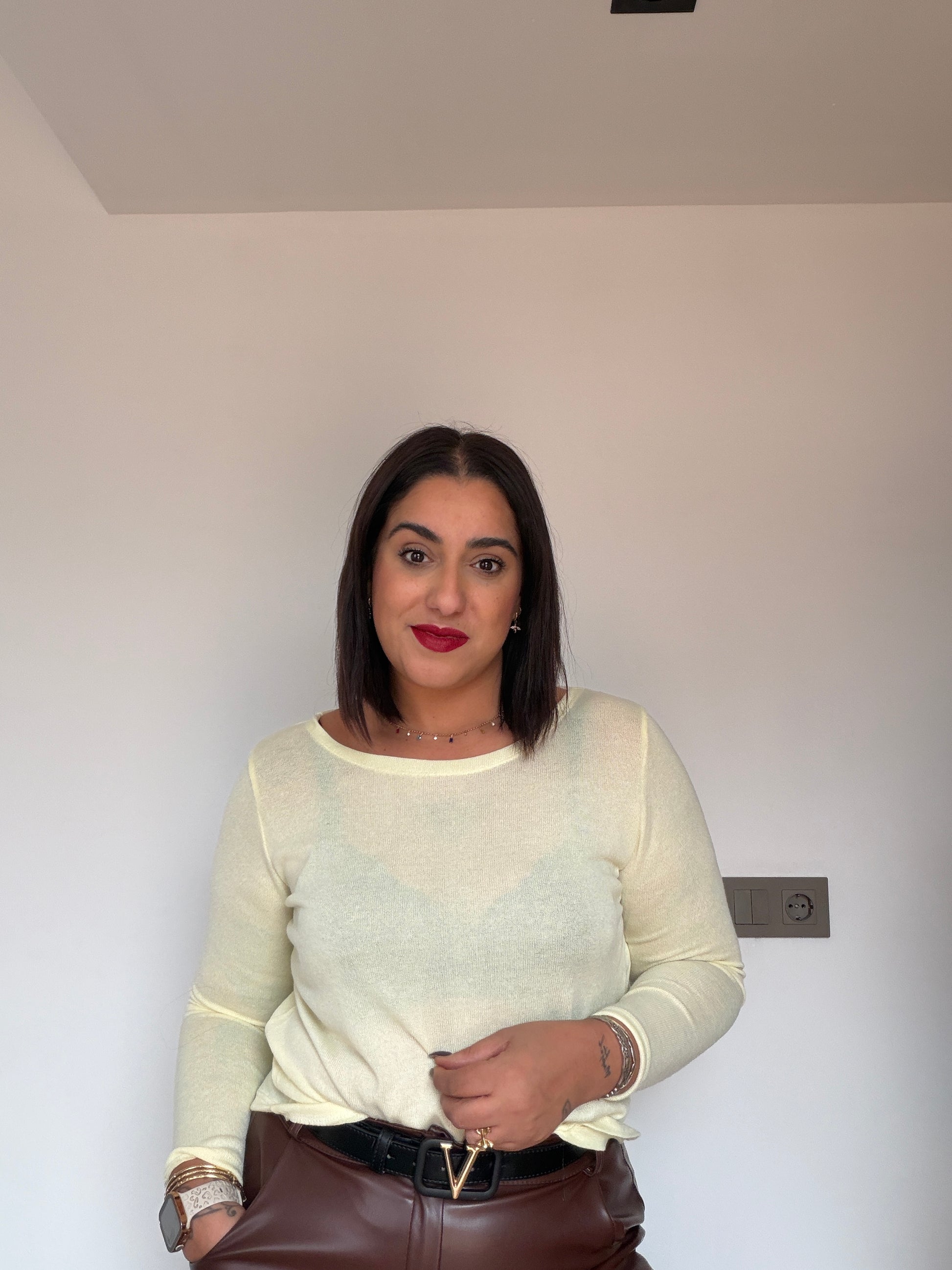 Descubre la versatilidad en su máxima expresión con nuestra Camiseta de Punto Fino. Una prenda esencial que combina la ligereza de una camiseta con la calidez y textura del punto. Su caída fluida y su tacto ultra suave la convierten en la pieza ideal para llevar sola en entretiempo o debajo de tus blazers y cárdigans favoritos cuando refresca.