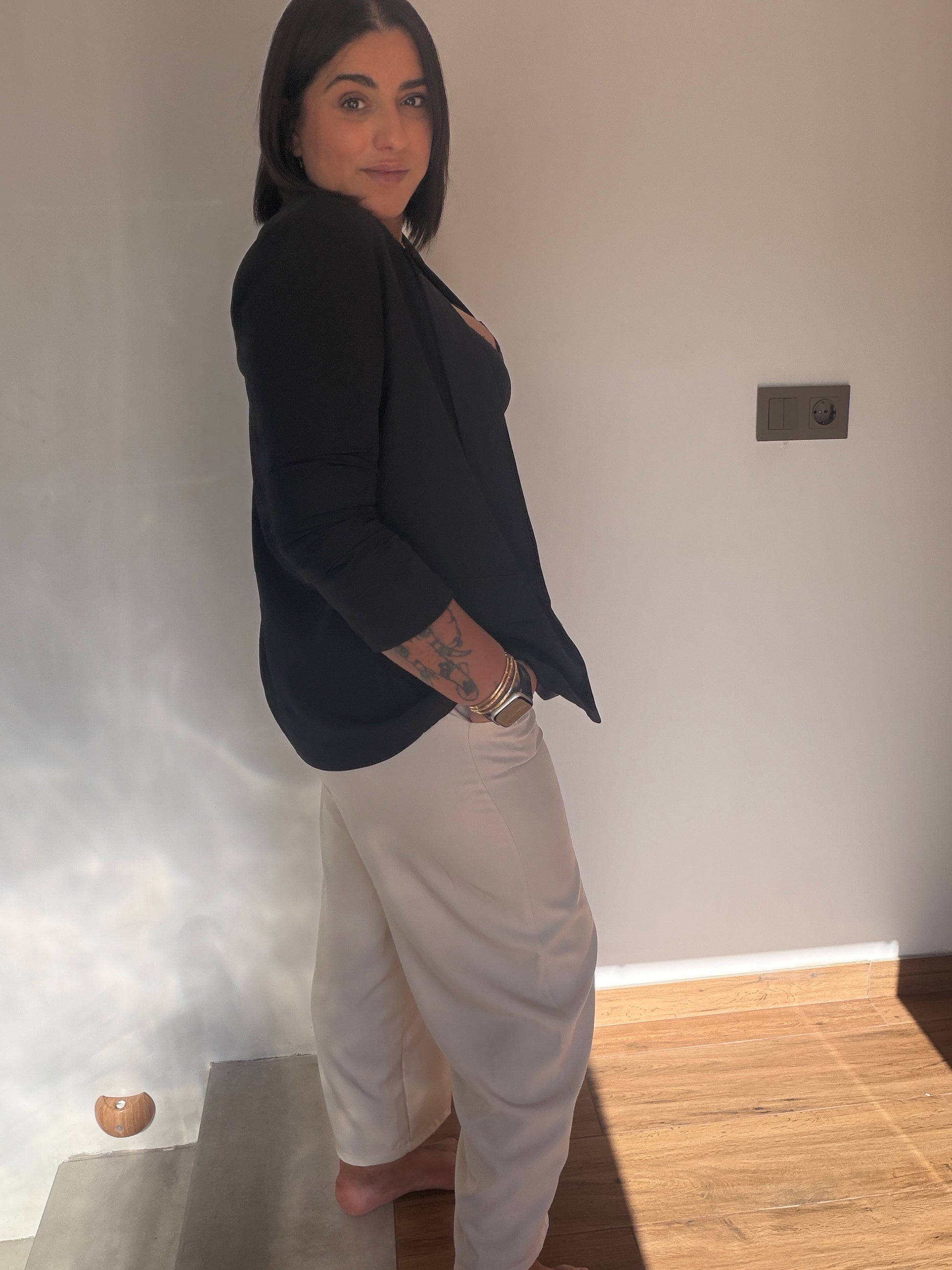 Perfecto para combinar con tops, camisas o blazers y crear desde looks casuales hasta outfits más sofisticados.